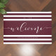 Welcome your guests to your home with your own custom personalised "Welcome" doormat. The design features a minimal and elegant design with "Welcome" displayed in elegant modern calligraphy. The letters extend to the edge with a modern white stripe design. Personalise with the family name and house number.