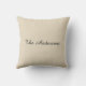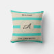 Welcome Monogram Family Name Turquoise Stripes Cushion