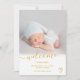 Welcome mustard script heart photo boy baby birth announcement