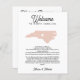 One of the best ways to make your out-of-town guests feel special is a wedding welcome letter included in your wedding welcome gifts. Share a welcome message for your NORTH CAROLINA wedding guests as well as an itinerary or schedule of the weekend's events. Front features your welcome message with a silhouette map of the state OF NORTH CAROLINA with a heart inside.