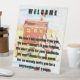 Welcome of a cup of tea pedestal sign