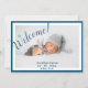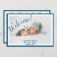 Welcome! Sweet blue with grey baby pattern on back. A cute baby birth announcement to announce your wonderful news.