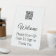 A display image is at the top. You can replace it with your qr code or another image. The display text can be edited to show your desired text. The sign is white. The text is black. Display text reads: Welcome Please Scan QR Code To Sign In Thank You