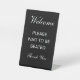 Welcome Please wait to be seated thank you Pedestal Sign. Elegant desk counter sign for welcoming guests in your restaurant, cafe, bar, club, cafeteria, shop, store, event, diner, wedding, party etc. Black and white or custom colours. Classy font can be changed too.