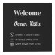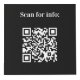 For hotel rooms, restaurant tables, rental properties. Personalise and add your business logo, and space for 4 QR codes. Black background, white text.