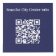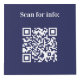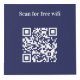 For hotel rooms, restaurant tables, rental properties. Personalise and add your business logo, and space for 4 QR codes. Navy blue background, white text.