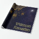 Welcome the holy month of Ramadan with this stunning Islamic design wrapping paper! This beautiful paper features a dark blue background adorned with intricate Arabic calligraphy and a crescent moon, symbolising the spiritual significance of the season. Golden stars and lanterns add a touch of elegance and warmth, creating a festive atmosphere.
