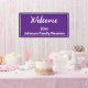 This royal purple family reunion banner has white display text. You can edit the text to show a custom message. The top line of the text is a script that currently says Welcome. The centre line is for the year or date. The final line is for the event name.
