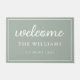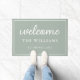 Personalised family name door mat featuring elegant calligraphy script and modern design.