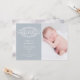 Decorative rustic script "welcome" with flourishes and a butterfly stencil illustration coupled with name and date in elegant serif font. Very easy to customise with your information and photo for rustic elegant announcement, and you can change the colour of the background beyond the existing choices of dusty blush and baby blue.