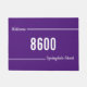 Large white house numbers can be personalised to make a unique housewarming gift. The house numbers are in the centre of a royal purple doormat. Above the numbers, you can write your custom message (shown: Welcome). Make it a street address sign by changing the display text under the house number to the recipient's street. All text is white and can be edited or deleted.