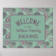This beach house themed poster sign is aqua, plum, mauve and ivory with a seaside pattern of seashells, sand dollars and starfish. The family name monogram can be personalised, and the "beach house" typography can be left as is, or changed to "kitchen", or "yacht" or "cottage", or anything else that applies. You can also change the word Welcome if you wish.