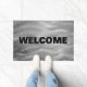 Silver brushed metal wavy abstract design with gradient lighting and Welcome text.