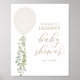 Welcome friends and family to your baby shower, featuring watercolor balloon and eucalyptus with golden typography.