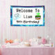 Power up your celebration with this bold and playful gamer-themed design! Featuring a gaming controller in a vibrant world filled with “Level Up” birthday cake, confetti, balloons, dragons, aeroplanes, and more, this fun design is perfect for adding a touch of gaming excitement to your party. This is a welcome to banner!