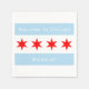 Personalised "Welcome to Chicago" napkins featuring the Chicago flag design with two light blue stripes and four red 6-pointed stars.
