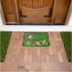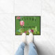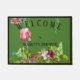 Tropical fantasy of flowers, foliage, and flamingo in watercolors against jungle green ground. Customise your welcome. Primarily warm pinks and tropic greens.