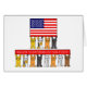 Two rows of cartoon cats of different colours, one row are holding up a large American flag, the other row is holding up a red banner. The red banner says 'Welcome to our foreign exchange student'.
