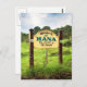 Maui Hawaii road sign. Welcoming visitors to the historic town of Hana after the long winding scenic drive along Maui's lush tropical coast scattered with waterfalls.