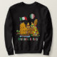 Welcome To Italy with the Rome Colosseum, Leaning Tower Of Pisa Free Standing Bell Tower of the Cathedral of the Italian city of Pisa. Cute and Funny Pizza People Characters Couple wearing Venetian Style Carnival Masks. An Italian Man in a Blue / White Striped Shirt, Hat, Red Scarf and Sash in a Venice (Venetian) Gondola Rowing Boat. Parked is a Red Scooter. A Tree made out of Pasta Spaghetti and Meatballs Wrapped Around a Large Eating Fork. Sitting Under the Pasta Tree is a Bottle of Wine, Cheese, Italian Salami, Linguica and other Meats, Tomato and Grapes. Waving above the Colosseum is an Italian Flag and a Green, White and Red Italian Coloured Soccer Ball as a Moon. Distressed Font Reads "Welcome To Italy". #keepsake collectors memorabilia Gifts