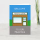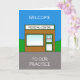 A cartoon of a medical centre, with an 'open' sign in the window of the door. The image is accompanied by the words 'Welcome to our practice'.
