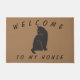Cat lovers Welcome to My House cat doormat, with black cat and text.