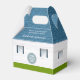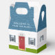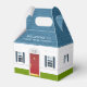 Welcome your new client to their home with this gift or treat box that looks like a house, with blue roof, red door, and white wood panels and the year over the door. Back of the box features your sentiment, name, and company logo. Great for the real estate agent or other person who wishes to treat their customer or client with an alternative to a gift basket. Items for the box that feature your logo, such as cookies and other goodies, can also be found in my store, One Stop Business Shop (www.Zazzle.com/OneStopBusinessShop.