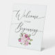 It is sturdy than I expected. Was worried about the material being flimsy but it is not. It is printed on some sort of plastic material. It should serve well at our wedding as long as wind isn’t too bad. Otherwise we will put some paper weights behind it and should be fine.