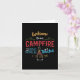 Campfire designs hat says welcome to our campfire with friends, marshmallows get toasted at the same time. This design looks really effective on these Greeting Card