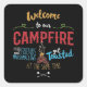 Campfire designs hat says welcome to our campfire with friends, marshmallows get toasted at the same time. This design looks really effective on these Stickers