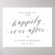 Simple Elegant Calligraphy Script Wedding Reception Sign Welcome to our happily ever after - in beautiful flowing fancy letters and your personalised text. A stylish yet simple formal design in black and white or any background colour you choose. Just click the customise further link, shown under the text personalisation area on the right, and choose your custom colour background. This sign poster template makes it fast and easy to create stunning additions to your wedding decor. Signs can be enlarged, there are many sizes to choose from, as well as options for custom framing and matting. Welcome custom signage.