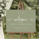 Set the tone for your special day with this sleek sage green acrylic wedding sign. Featuring "Welcome to Our Happily Ever After" in a stylish handwritten script with graceful swashes, this modern minimalist design is effortlessly elegant. Personalise it with your initials, names, and wedding date for a timeless, sophisticated touch. All colours are editable. © Kimbellished, LLC