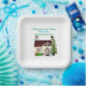 This new home/housewarming party paper plate features a darling cartoon house and landscape tree, bush and potted plants Personalise this new home paper plate with your own words.