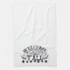 Our custom kitchen towel adorned with with the words "Welcome to Our Home Y'all" in black and white. View our full line of products in our Zazzle store.