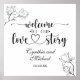 A modern and elegant black and white floral line art 'Welcome' sign for your Big Day!
