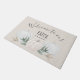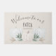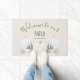 Trendy Welcome to our Patch fall doormat, with watercolor pastel and white pumpkins and autumn leaves, on a muted peach background. This chic rustic item features your family name, and modern script typography.