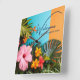 Welcome to our retirement home! The design on this beautiful acrylic wall clock features tropical palm fronds and colorful hibiscus flowers on a pretty blue and orange background. The phrase "Welcome to our retirement home" completes the design. The wall clock is great for Florida retirees, Lowcountry retirees, or any Coastal area residents. Choose from square or round styles. Please browse our complete collection of Florida, Tropical, Coastal, and Lowcountry cards, gifts, and home decor. Special design requests accepted.