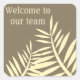 Welcome the newest addition to your team, department, or company with this inexpensive "welcome to our team" sticker. This design features a darker brown/grey background along with beige leaf silhouettes. "Welcome to our team" can quickly and easily be customised to suit your needs.