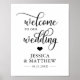 Simply elegant WELCOME TO OUR WEDDING design on white background and black script topography letters with small heart. Perfect for any theme, style, or time of year.