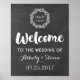 Wedding welcome sign poster in rustic chalkboard pattern with vintage wreath illustration and hand lettered style custom text and monogram.