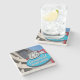 The coasters are gorgeous, a quality feel and heavy weight. They look like a precious archeological find. A rustic stone juxtaposed with a modern floral black and white print. I like the way the print goes slightly imperfect on the cut stone edges giving them a kind-of natural beauty.
