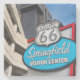 Stone coaster featuring a Route 66 sign from St. Louis Street in downtown Springfield Missouri that includes the Hammons Tower, Springfield Visitor Centre and a Parking Garage.