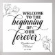 A modern and elegant black and white floral line art 'Welcome' sign for your special day!