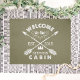 Welcome visitors to your woodsy getaway with this rustic olive green and white doormat. Design features your personalised cabin logo, with two crossed arrows, a copse of pine trees and a length of twisting rope adorning your family name and year established. Mat reads "Welcome to the [Name] Cabin" in white rustic destroyed typeface.