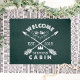 Welcome visitors to your woodsy getaway with this rustic hunter green and white doormat. Design features your personalised cabin logo, with two crossed arrows, a copse of pine trees and a length of twisting rope adorning your family name and year established. Mat reads "Welcome to the [Name] Cabin" in white rustic destroyed typeface.