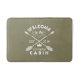 Perfect for a guest bathroom or for your weekend home, this olive green and white bathmat features "Welcome to the [Name] Cabin" in rustic sandblasted text, with crossed arrows and a rope illustration. Customise with your name and year established.