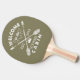 This personalised ping pong paddle makes a great housewarming gift and a fantastic addition to a summer/vacation home. Olive green paddle features "Welcome to the [Name] Cabin" in rustic white text, with two crossed arrows, a cluster of woodsy pine trees and a rope illustration. Personalise with a name and year established for a truly unique paddle!
