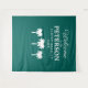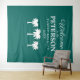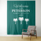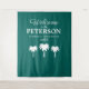 Welcome to the family reunion party photo backdrop. Elegant typography template for surname and date. Teal or custom background colours. Great for making professional group photo's and selfies. Personalised wall decor tapestry available in small and big extra large sizes. Personalised decoration for fun family gathering, meeting, celebration etc. Tropical palm tree silhouettes with elegant typography. Upload your own chic logo or crest optionally.
