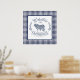 Stylish square wall print features centre "Welcome to the Farmhouse" text with farm animal silhouettes and a blue gingham background