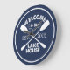 You may be on lake time, but a clock is still a practical choice. Our customised creation in classic navy blue and white features "Welcome to the Lake House" in destroyed vintage typeface with two crossed canoe paddles and a rope illustration. Customise with the year you started life at the lake!
